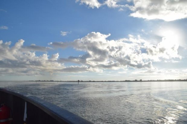 Wir lernen Kenny und seine Familie kennen, die das erste Mal mit den beiden jüngeren Töchtern zusammen Urlaub machen und in North Carolina wohnen. Ihr Truck ist voll mit Angelruten, Kisten und vorwitzigen Einsiedlerkrebsen, die sie für ihr heimisches Aquarium gefangen haben. Die 60 minütige Überfahrt vergeht dank des sehr interessanten Gespräches wie im Flug und wir lernen wieder einmal viel über Land und Leute.