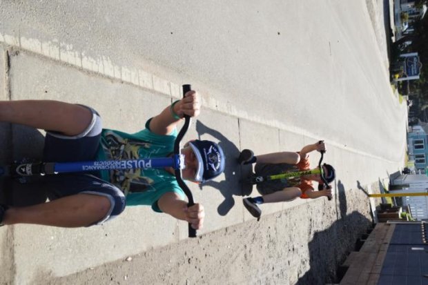 Die Roller der Kinder leisten hier mal wieder gute Dienste.