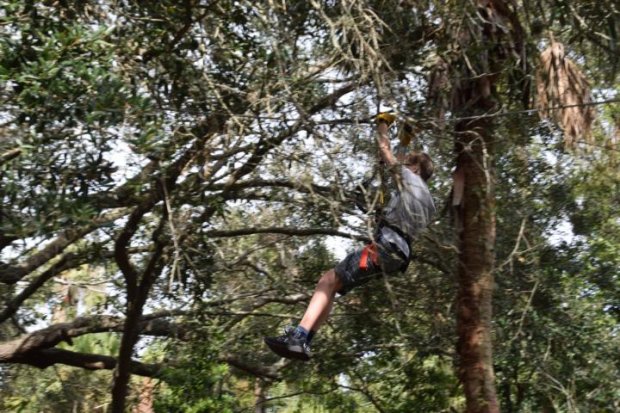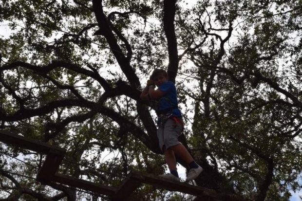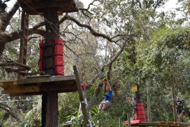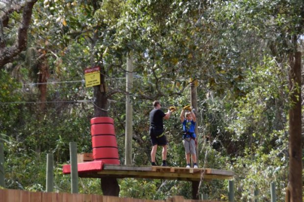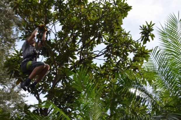Im Park erklimmen Marco, Luca und Tino als erstes den Zip Line Parcour (Sepik River Course) und klettern und ziplinen sich über den Becken mit den Alligatoren von Baum zu Baum. Dies ist kein Vergleich zu deutschen Hochseilgärten, da es sich hier fast ausschließlich um Ziplines, d.h. Seilrutschen handelt. Teilweise ist es sehr anstrengend und herausfordernd, aber alle drei meistern die Herausforderung und sind zu Recht sehr stolz auf sich.