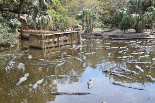Früh erreichen wir den wunderschönen Ort St. Augustine und sind begeistert von der schönen Altstadt, der schönen Klappbrücke, dem Hafen, den Palmen und den tollen Löwenskulpturen. Wir haben uns aber gegen den Besuch der Altstadt und für den Besuch der St. Augustine Alligator Farm entschieden, so dass wir bald auf den kostenlosen Parkplatz des Alligator Parks rollen. Hier sind wir die einzigen RV´s, auch sonst ist der Parkplatz ziemlich leer.