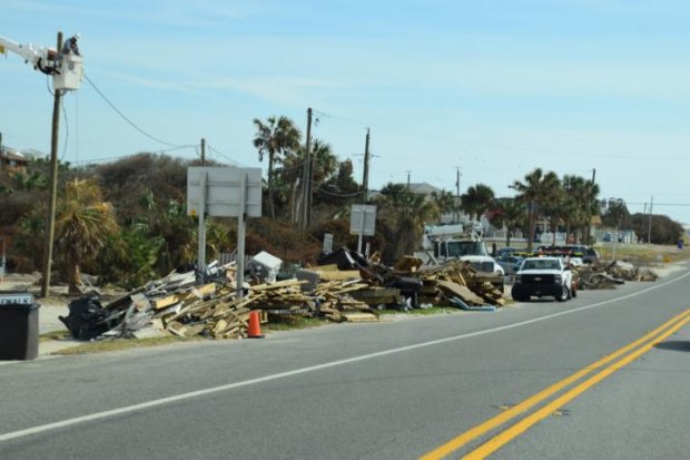 In Höhe Flagler Beach ist die Straße komplett weggerissen und die Reparaturarbeiten laufen auf Hochtouren. Wir sind stark betroffen, denn hier liegen teilweise mehr Trümmer als auf den OBX. Unglaublich, welche Kraft diese Naturgewalten haben.