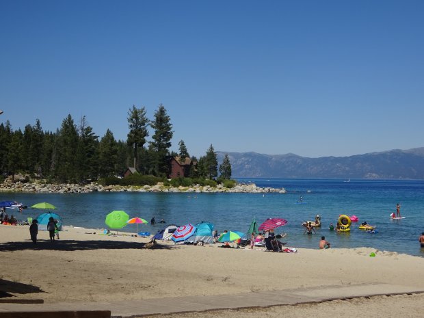 Ein einmaliger Sandstrand (der Sand ist grobkörniger als am Meer). Wir geniessen die Sonne, das Wasser nur bedingt, es ist doch sehr kühl, ich tippe auf unter 20°C und die Landschaft. Die Kids buddeln derweil im Sand![]()