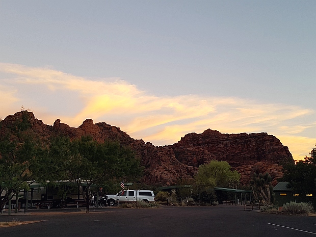 Was bin ich froh, als endlich das erste Licht am Horizont zu leuchten beginnt. Ich kann gerade sehr gut nachvollziehen, wie sich ein Stück Pulled-Beef fühlen muss, wenn es auf einem heißen Stein langsam gegart wird. Sehnsüchtig blicke ich zu den RVs auf den Electric Sites mit ihren Klimaanlagen – aber ich konnte noch nie gut in der ersten Nacht im Zelt schlafen…kann also nur besser werden.