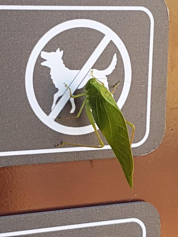 Als wir am frühen Nachmittag im Snow Canyon aufschlagen, werden wir vom Ranger eindringlich vor jeglicher körperlicher Aktivität nach 11.00 Uhr gewarnt. Unser Zelt bauen wir versteckt hinter und unter dichten Hecken auf, die wenigsten ein wenig Schatten spenden. Etwas Unruhe bricht dann aus, als Moritz ruft "Da, eine Schlange", die unweit des Zeltes in den Büschen verschwunden sei. Der Ranger bschwichtigt später, es gäbe "no poisonous snakes around". Wir fragen uns, ob das die Schlangen auch wissen, haben wir doch bei den nicht weit entfernten Yant Flats oder dem Zion so unsere eigenen Erfahrungen gemacht. Einigermaßen beruhigt sind wir erst, als ich zumindest das rassellose Hinterteil der grünlich-braunen vermeindlichen Gardensanke am Abend in Ihrem Loch - oder sagt man da Bau? - verschwinden sehe, nachdem uns die Kids darauf aufmerksam gemacht hatten. Neben dem von den Kids täglich gesichteten Reptil, gibt es hier reichlich passende Beute: unzählige Roadrunner, Hasen und sogar einen Grashüpfer auch wenn der vielleicht nicht ganz ins Beuteschema passt.