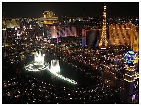 Die Kids fielen dann nach unserer Rückkehr ins Hotel totmüde ins Bett, nicht ohne allerdings noch einmal einen ausgiebigen Blick auf die grandios beleuchtete Glitzerwelt samt den inzwischen hell strahlenden Fountains geworfen zu haben. Auf dem Balkon mit herrlicher Aussicht schrieb ich dann Lufthansa wegen unserer Verspätung auf dem Hinflug bestens gelaunt noch eine nette Mail, nachdem ich mich wiederrum hier im Forum über unsere Fluggastrechte informiert hatte.