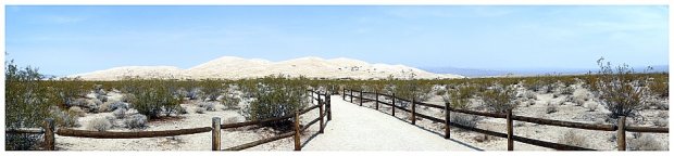 Blick auf die Kelso Dunes vom Parkplatz. Scheint ja ein netter kleiner Hike zu werden.