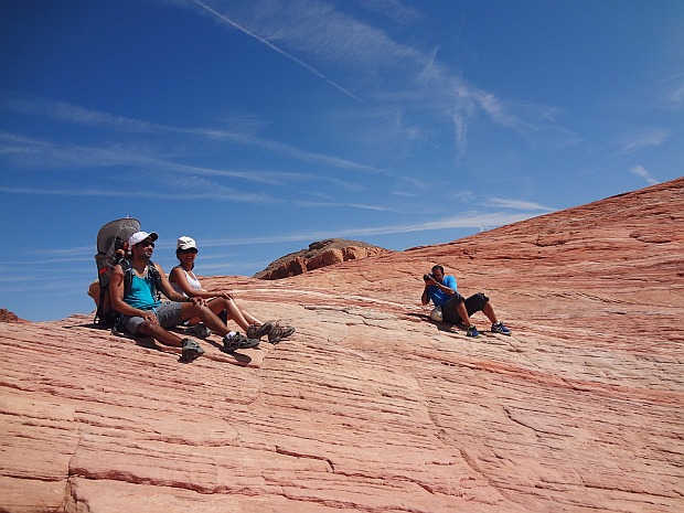 Ich hatte bei der Planung immer wieder darauf hingewiesen, dass wir unseren Hike im VoF wegen der Hitze sehr früh antreten müssen. Bis wir nach einem leckeren Frühstück mit frischen Smoothies - übrigens aus dem neuen Smoothie-Maker, den sich meine Family beim Ersteinkauf gekauft hat - beim Trailhead zur Wave loslaufen, ist es dennoch zehn Uhr. Für zwei Familien mit kleinen Kindern eigentlich gar nicht so spät, aber viel zu spät für das Valley of Fire im Hochsommer!