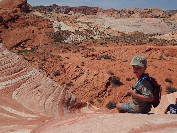 Die Fire Wave ist wirklich schön, aber zur Golden Hour ist sie noch fotogener. Obwohl unsere Kids eigentlich wissen und auch immer wieder von uns gesagt bekommen, dass sie viel trinken und sich immer wieder mit Wasser abkühlen sollen, hält sich Lea nicht daran. Entsprechend platt ist sie bei der Ankunft am RV. Meine Verwandtschaft hat mittlerweile die Klimaanlage im RV auf Hochtouren laufen und ist entsprechend gut erholt, bevor wir zurück fahren.