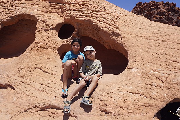 In Mesquite gehen wir erst in einer Sportsbar Lunch essen und dann in einen Supermarkt, da es hier die letzte gute Möglichkeit gibt, vor Utah insb. Alkohol- aber auch fehlende Lebensmittelvorräte aufzustocken. Kurz vor St. George gibt es dann ein heftiges Gewitter und es kühlt ein wenig ab. Am späten Nachmittag kommen wir am herrlichen CG im Snow Canyon an. Wir haben eine herrliche versteckte Site mit Kletterfelsen – na eigentlich darf man hier nicht klettern, aber die Kinder betteln so lange, bis wir es dann doch erlauben.