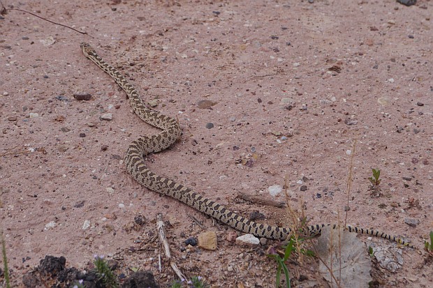 Zurück am Visitor Center werden 4 neue Junior Ranger vereidigt und Moritz kauft sich von seinem Taschengeld eine Schwarzlicht Lampe mit der er nachts nach Skorpionen suchen will – sein Klapperschlangen-Erlebnis hat er offensichtlich gut verarbeitet. Das nächste Schlangenerlebnis wartet dann allerdings früher als erhofft - und zwar auf mich. Nachdem wir nach kurzer Fahrt zum Petrified Forest SP unsere Sites bezogen haben und mit Badesachen zum See laufen ruft mir Ina plötzlich zu, dass ich fast auf eine Schlange getreten sei. Gedanklich schon beim Planschen hätte ich mitten auf dem Weg nicht damit gerechnet. Rasch bringen das Reptil und ich gleichzeitig ein paar Meter Sicherheitsabstand zwischen uns bis mir nach dem ersten Schreck der berühmte letzte Gedanke kommt: Wo ist der Foto?!