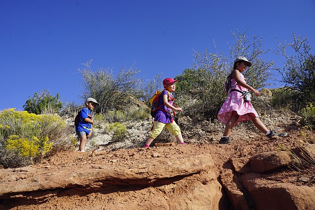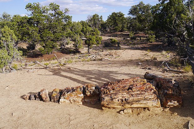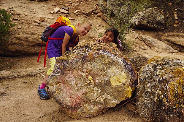 Da wir alle noch Energie haben, laufen wir am späten Nachmittag los, um uns noch das dem SP namensgebende Petrified Wood anzuschauen. Auch die kleineren Kids kommen ganz gut den kurzen Anstieg hoch, haben aber dann nach der kleinen Runde keine große Lust mehr auf den vielleicht 1 km längeren zusätzlichen Loop des „Adventure-Trails“.
