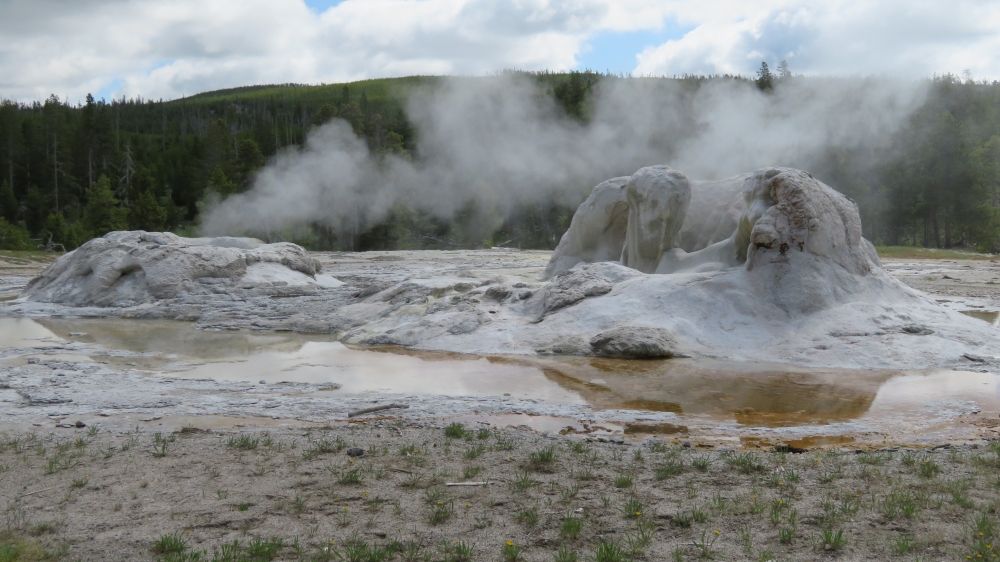 Früh am nächsten Morgen fahren wir zu einer der Hauptattraktionen im Yellowstone : OLD FAITHFUL (der treue Alte)