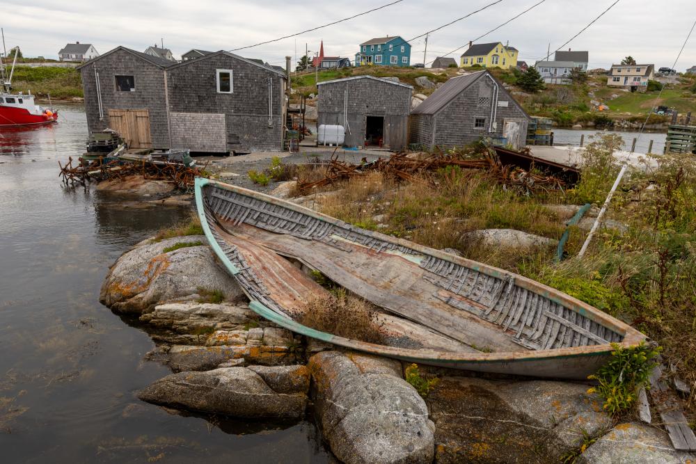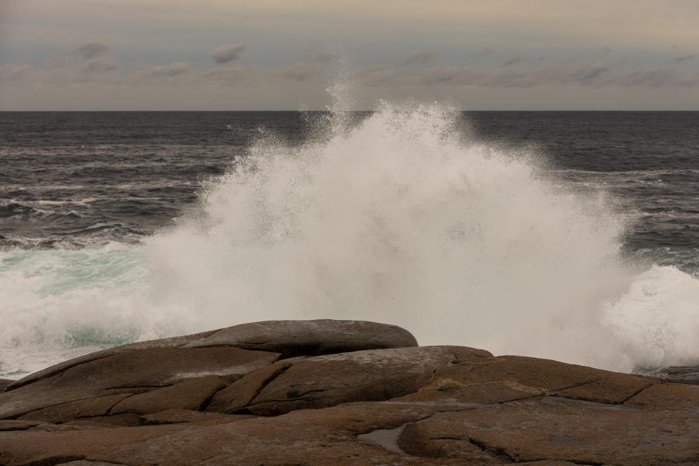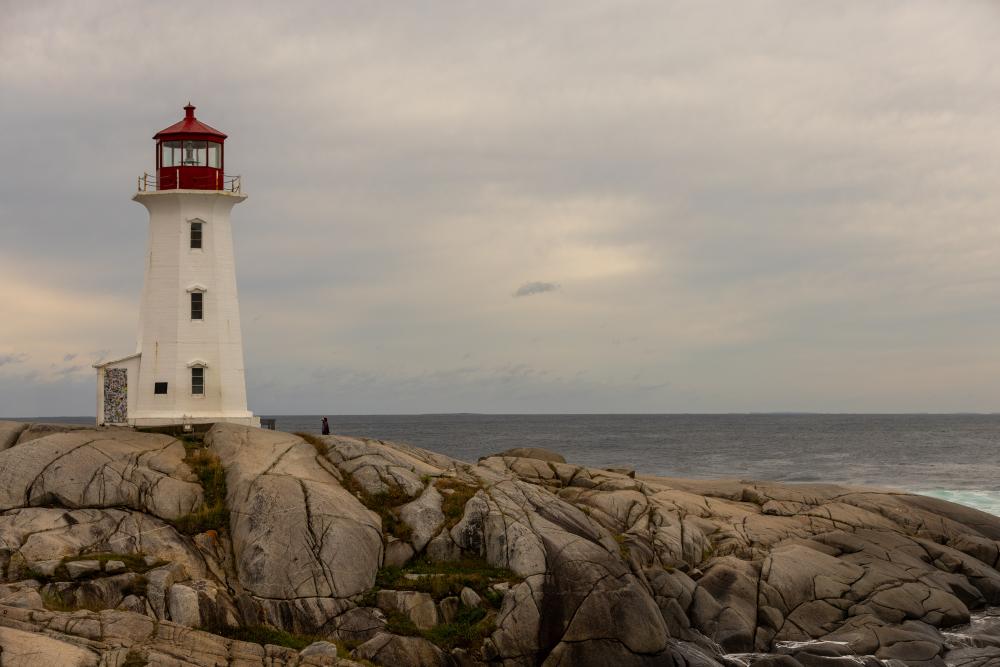 Es ist windig und frisch, auch die Dünung ist ordentlich. Dies liegt unter anderem daran, dass gerade vor der Küste vor Nova Scotia der Hurrikan Erin vorbei zieht. Von dem Memorial bis nach Peggy’s Cove sind es ca. 10 Minuten. Wir parken an dem ersten Parkplatz und laufen das Stückchen bis zum Leuchtturm. Peggy’s Cove ist ein kleiner Ort mit wenigen bunten Häusern und einem natürlichem Hafen in dem einige Fischerboote angelegt haben. Das Wahrzeichen ist ein Leuchtturm, der auf Granitfelsen erbaut ist und den man zu Fuß erreichen kann. Es wird eindringlich vor der starken Brandung und den rutschigen Felsen gewarnt. Auch hier ist der Wind sehr stark aber durch die starke Brandung bekommt der Leuchtturm ein eindrucksvolles Flair. Als wir ankommen sind noch wenige andere Menschen dort, aber es kommen immer mehr, auch wenn es nicht überfüllt ist. Ich lasse kurz die Drohne aufsteigen und um den Leuchtturm kreisen, man merkt aber, dass sie bei dem Wind an ihre Grenzen kommt. Bis wir wieder am Auto sind ist auch knapp eine Stunde vergangen.