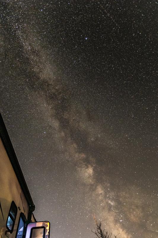 Die Aufnahme des Nachthimmels mit Camper im Vordergrund ist dir auch gelungen.