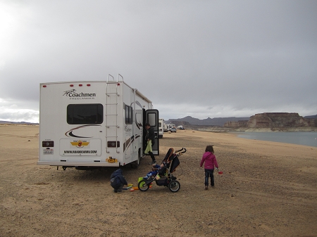 Es ist ein wenig zum Abgewöhnen. Es ist kalt, windig und regnet dauerhaft.Da es draußen auch nur 8 Grad sind, nicht wie laut Wetterbericht angekündigt 15 Grad, gehen wir früh ins RV und machen die Heizung an und holen das erste Mal die eigens für diese Situation gekauften Schlafäcke für die Kinder startklar.