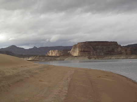 Es ist düster, windig und kühl als wir Sedona verlassen.Das Navi kündigt unsere Ankunft in Page für 14:30 Uhr an.Puuh,..wieder ein halber Fahrtag für die Kinder.Nachdem wir noch tanken waren( gab nur für 100 Dollar Benzin) und die Scheibe geschrubbt haben kündigt es sogar die Ankunft erst für 15 Uhr an.Unsere armen Kinder.