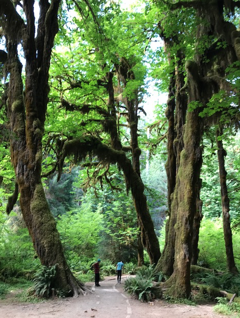 Wir genossen den Strand so sehr, dass es für den 2nd Beach nun leider nicht mehr reichte. Nach einem schnellen Pick-Nick rollten wir weiter zum Hoh Rain Forest. Dort liefen wir den Moss Trail und weil es uns (fast) allen so gefiel auch gleich den Spruce Trail, wo wir am gegenüber liegenden Ufer einen kapitalen Hirsch erblickten.