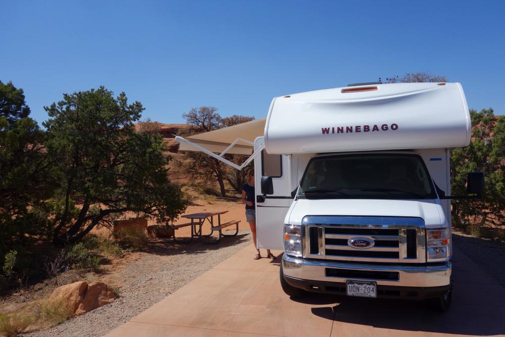 Danach fahren wir zum Double Arch. Auch toll, aber sehr voll. Auch Parken ist hier schon gegen 9:30 Uhr ein Problem und wir finden den letzten freien RV Platz. Danach geht’s zum hochgelobten Devil´s Garden Campground. In der Tat gefällt es uns hier sehr gut. "Awesome place" denke ich und fahre die Markisse aus ;)