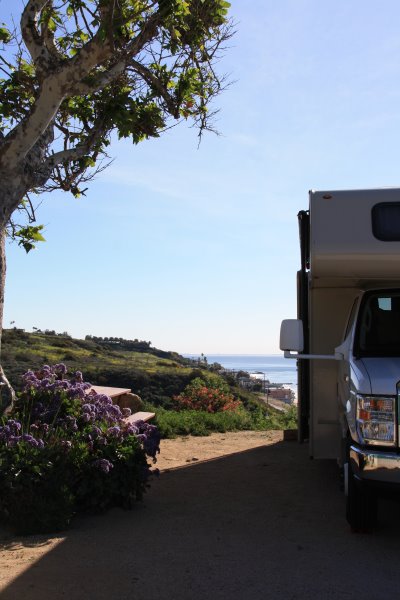 Gegen 10:00 sind wir unterwegs zum Solstice Canyon. Der Parkplatz ist ziemlich klein und es gibt auch keine größeren Plätze für Wohnmobile, aber wir können uns mit Überhang nach hinten auf einen normalen Parkplatz stellen. Als wir ankommen, ist der Platz auch noch fast leer.