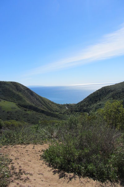 Wir laufen den Rising Sun Trail. Der Himmel ist strahlend blau, die Sonne scheint. Der Weg ist anstrengend. Es geht bergauf ohne irgendeinen Schatten und uns wird sehr schnell sehr warm. Wir machen immer mal wieder kurze Trinkpausen, aber trotzdem bin ich ziemlich geschafft, als wir auf dem höchsten Punkt des Trails angelangt sind und es endlich bergab geht. Auch wenn es anstrengend ist, ist der Weg wunderschön. Wir können auf einem guten Stück immer wieder den Pazifik sehen. Auf dem letzten Stück führt der Trail dann bergab durch einen Wald. Hier riecht es unheimlich gut. Am Ende des Trails erwartet uns die Ruine des Roberts Ranch House und ein kleiner, ziemlich unspektakulärer Wasserfall. Zurück zum Parkplatz laufen wir über den Solstice Canyon Trail, der recht eben durch den Wald führt und zweimal den Bach quert. Insgesamt laufen wir etwa drei Meilen und sind dafür anderthalb Stunden unterwegs.