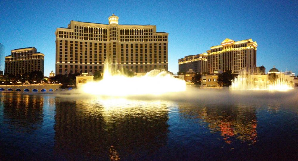 Da starten wir nämlich nochmals los, um die Stadt im Neonlichterglanz zu sehen. Die beeindruckenden Lichtershows der diversen Casino-Hotels bringen uns zum Staunen. Noch beeindruckender sind die Wasserspiele vor dem Bellagio, wenn man bedenkt, dass Las Vegas in der Wüste liegt.