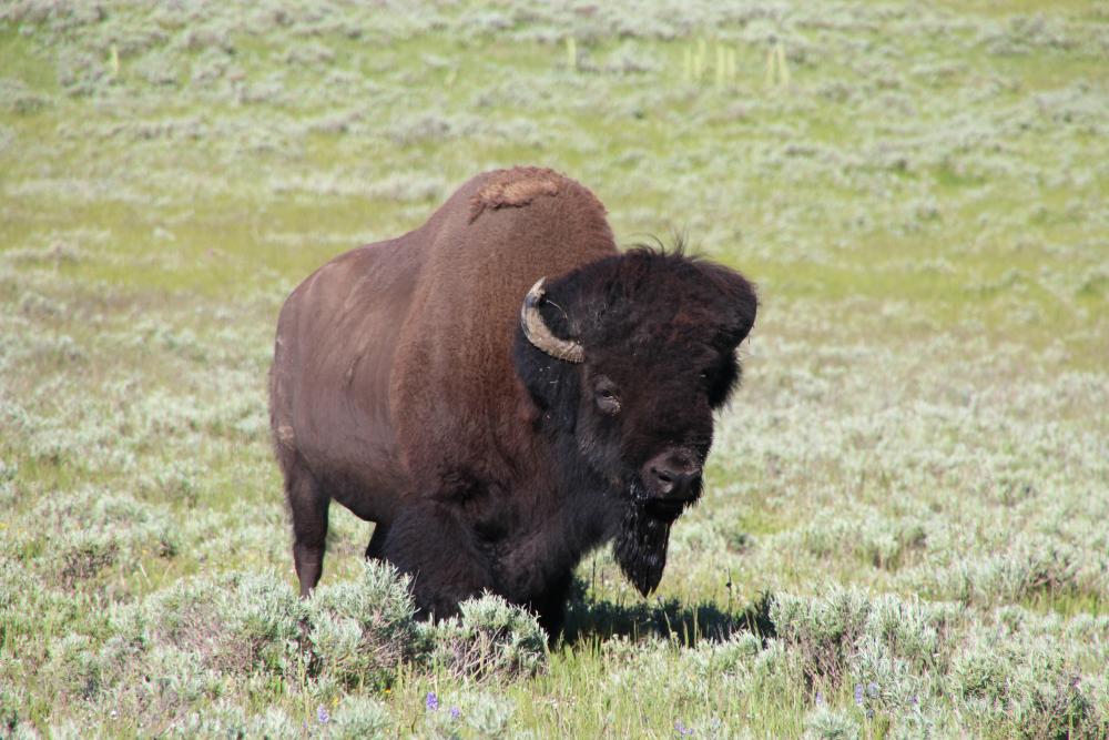 Regelmäßig konnten wir Bison-Herden beobachten und einmal haben auch zwei Bisons direkt vor uns die Straße überquert – Bisons haben da einfach Vorfahrt.