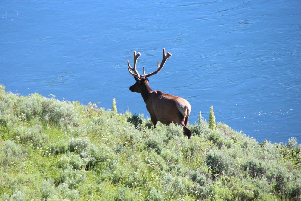 Nun ging es Schlag auf Schlag weiter – alle paar Minuten gab es Tiersichtungen: Wapitis, Deers und Bisons wechselten sich ab. Die Straßen waren fast leer und so konnten wir die Tiere meistens alleine beobachten.