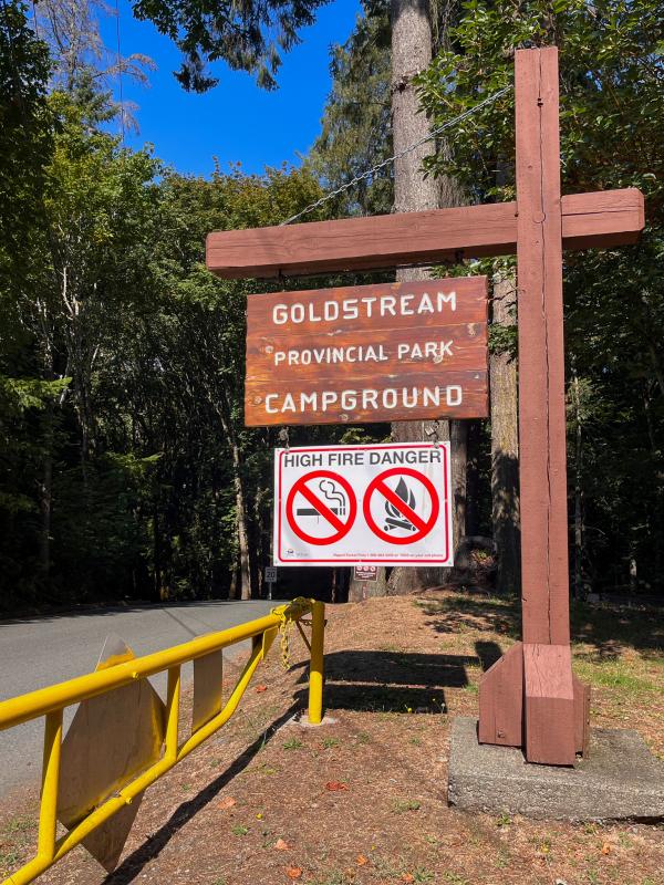 Geschwärmt habe ich auch von den abendlichen Lagerfeuern. Damit wird leider auch nichts, den es herrscht Fire Ban. Schon bitter, denn Kanada und Lagerfeuer, das ist für mich eine untrennbare Einheit und bisher hatten wir nie irgendwelche Restriktionen. So sitzen wir halt bei Kerzenlicht draussen und träumen vom knisternden Feuer und einem vorbei huschenden Hirsch. Wobei aus dem gemütlichen Sitzen am Lagerfeuer wäre auch nur bedingt etwas geworden. Wir haben doch tatsächlich nur einen «normalen» Campingstuhl im Fahrzeug, der andere ist offensichtlich eine Kinderausführung.