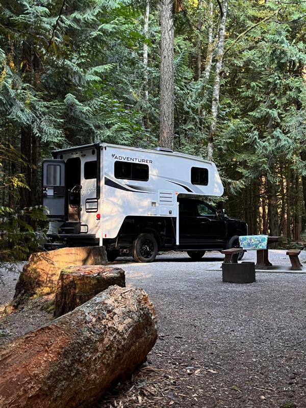 Und noch apropos Camper: als RV-gewohnte Reisende war die Umstellung auf den Truck Camper am Anfang schon gewöhnungsbedürftig. Irgendwie hatte ich mir das Innenleben des Campers etwas grösser vorgestellt, ungewohnt fand ich vor allem der erhöhte und kleine Toilettenraum, der im Vergleich zum RV fehlende Stauraum (vor allem der Kleiderschrank neben dem Bett fand ich nicht so prickelnd) sowie das (Ein-) Steigen in den Camper (definitiv eine Herausforderung für Menschen mit körperlichen Einschränkungen wie Knieproblemen etc.). Dafür habe ich von Anfang an das Bett geliebt und auch die Vorzüge des Truck Campers im Verlauf der Reise immer mehr schätzen gelernt, vor allem der Ausstieg nach hinten fand ich nach Eingewöhnung einfach nur klasse! Ich würde daher das nächste Mal auch wieder einen Truck Camper mieten. Dass das Fahren mit dem Truck in einer anderen Liga spielt als mit einem RV, ist wohl selbstredend.