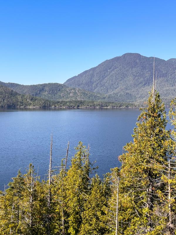 Schade nur, gibt es nicht viel Möglichkeiten zum Halten ausser am Kennedy Lookout, wo wir erstaunlicherweise fast allein den wunderbaren Blick über den Kennedy Lake geniessen: