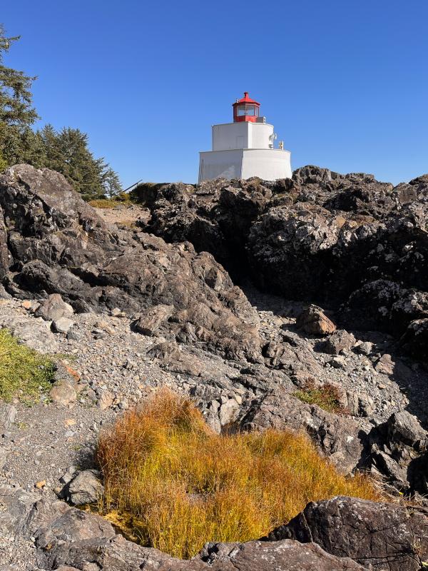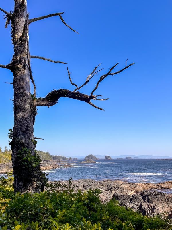 Kurz nach 1 Uhr Mittag halten wir am Visitor Centre, kaufen unseren Pass für die nächsten drei Tage und fahren danach Richtung Ucluelet, denn ich möchte meinem Mann den Lighthouse Loop zeigen. Wir parkieren beim Terrace Beach Resort, essen eine Kleinigkeit und laufen dann im Gegenuhrzeigersinn den Loop bei viel Sonnenschein und wunderbarer Sicht: