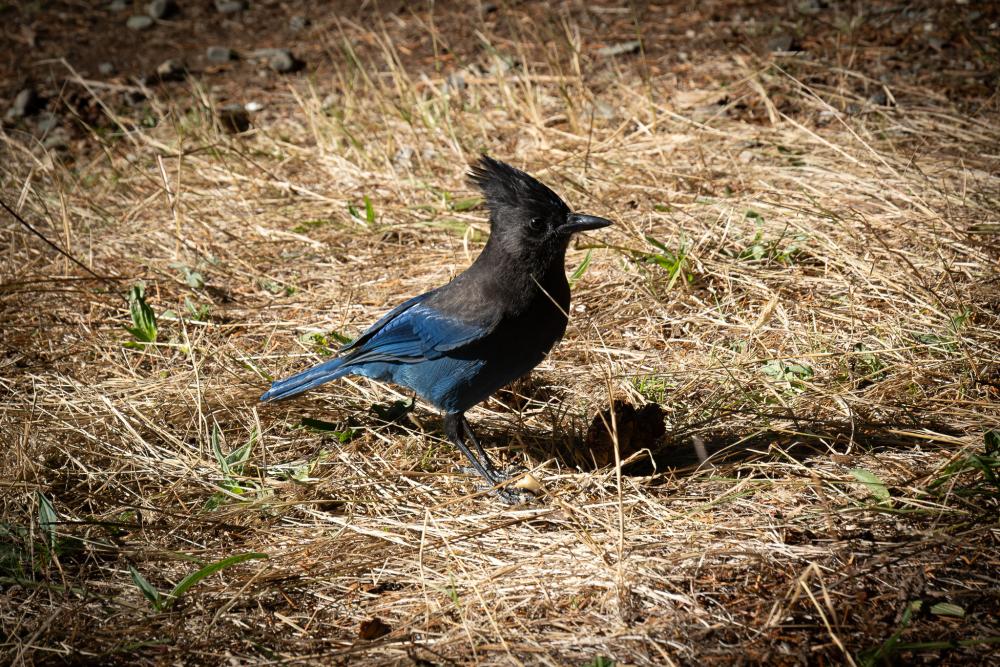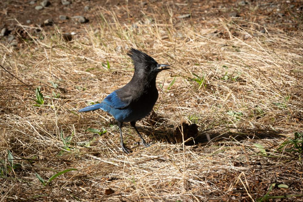 Was leider fehlt und auch während des gesamten Aufenthalts fehlen wird, sind irgendwelche Tiere, keine Deers, keine Hörnchen, gar nix. Zumindest ein verfressener Stellars Jay besucht regelmässig unseren Platz. Wir taufen ihn JJ und haben über die nächsten 2 Tage viel Freude an ihm.