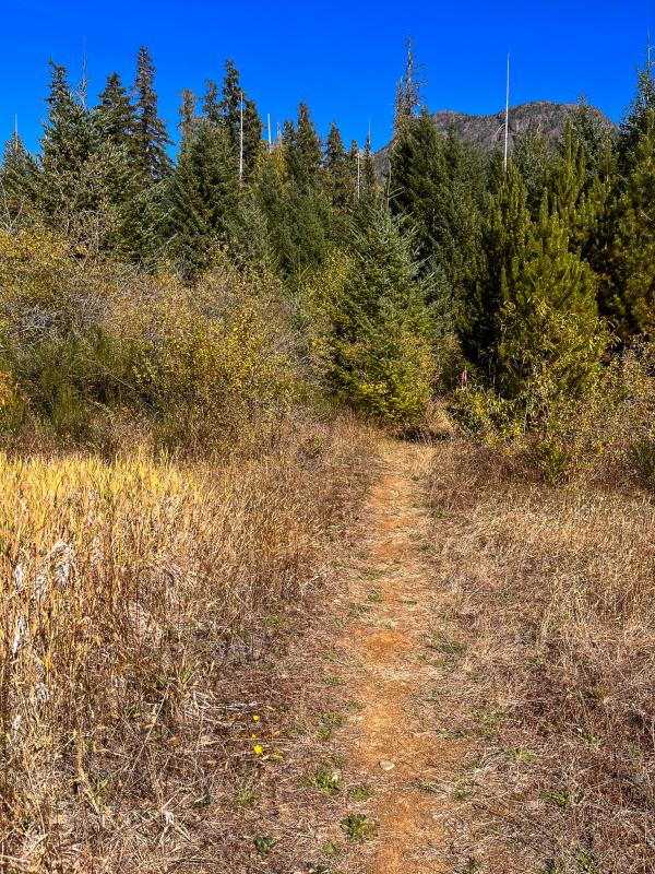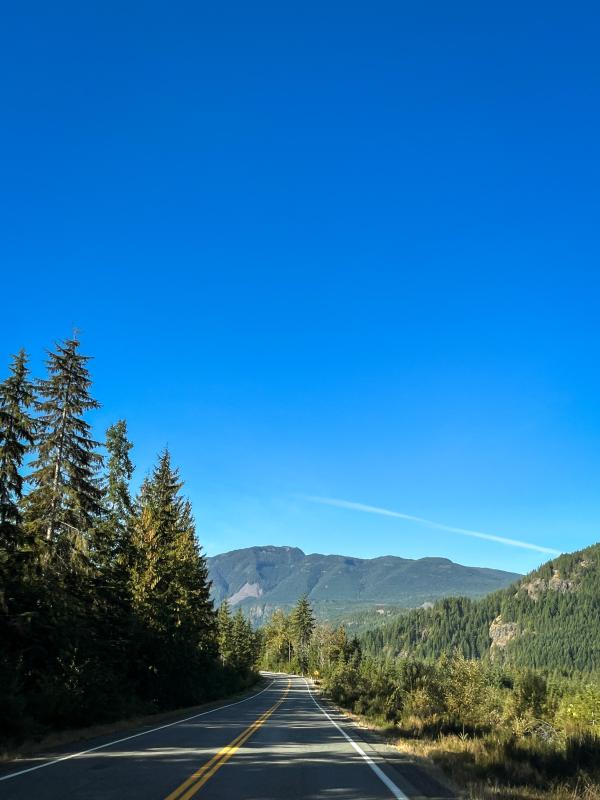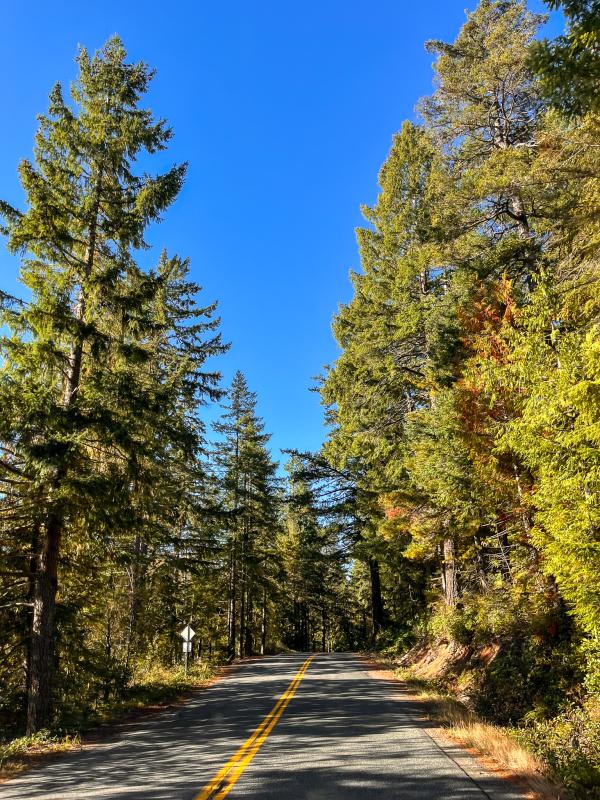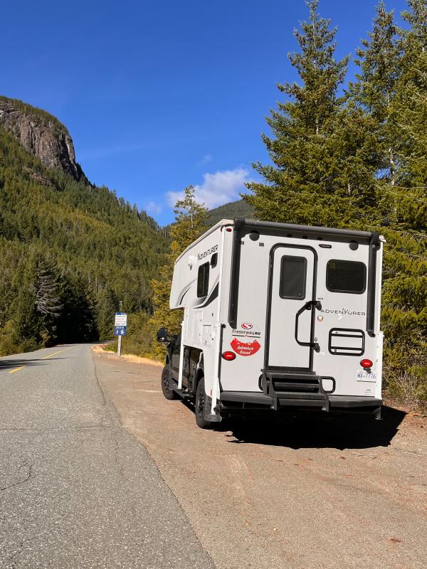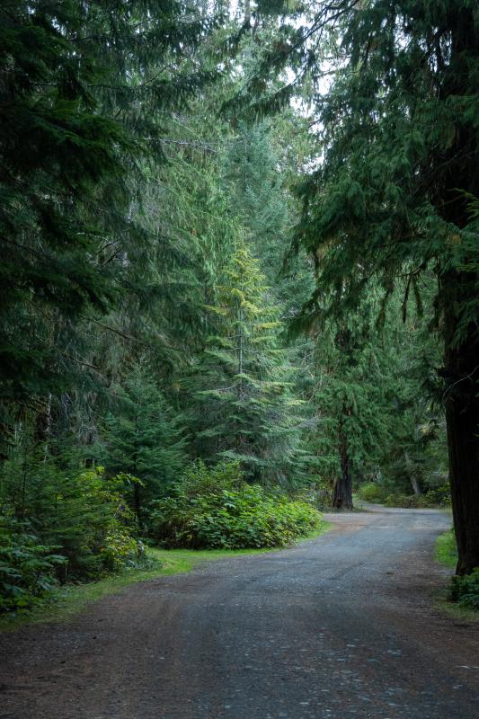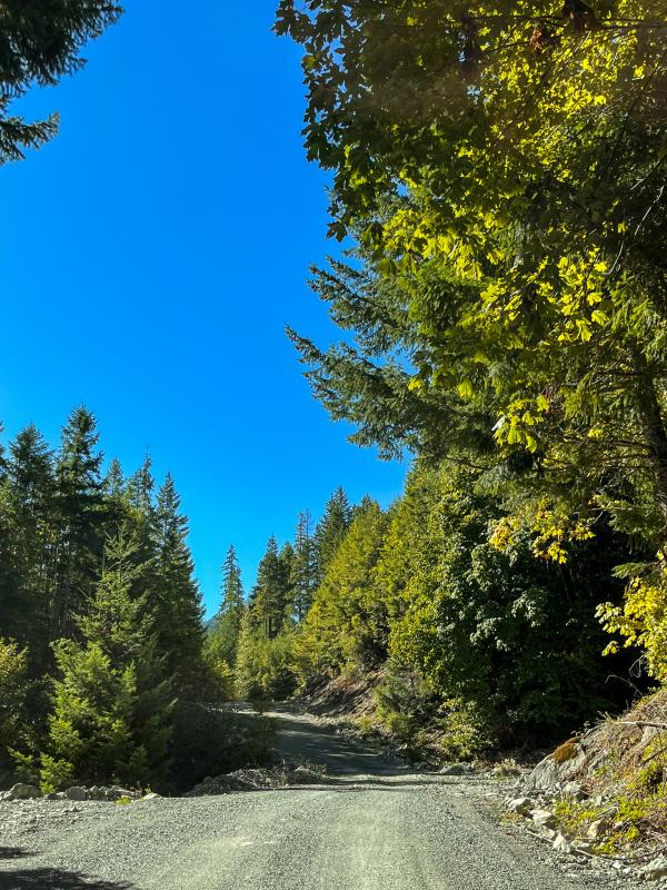 Die Strasse ist steil aber bei diesen trockenen Verhältnissen gut zu handeln und so erreichen wir nach einer halbstündigen Fahrt den kleinen Parkplatz beim Startpunkt des Bedwell Lake Trails.