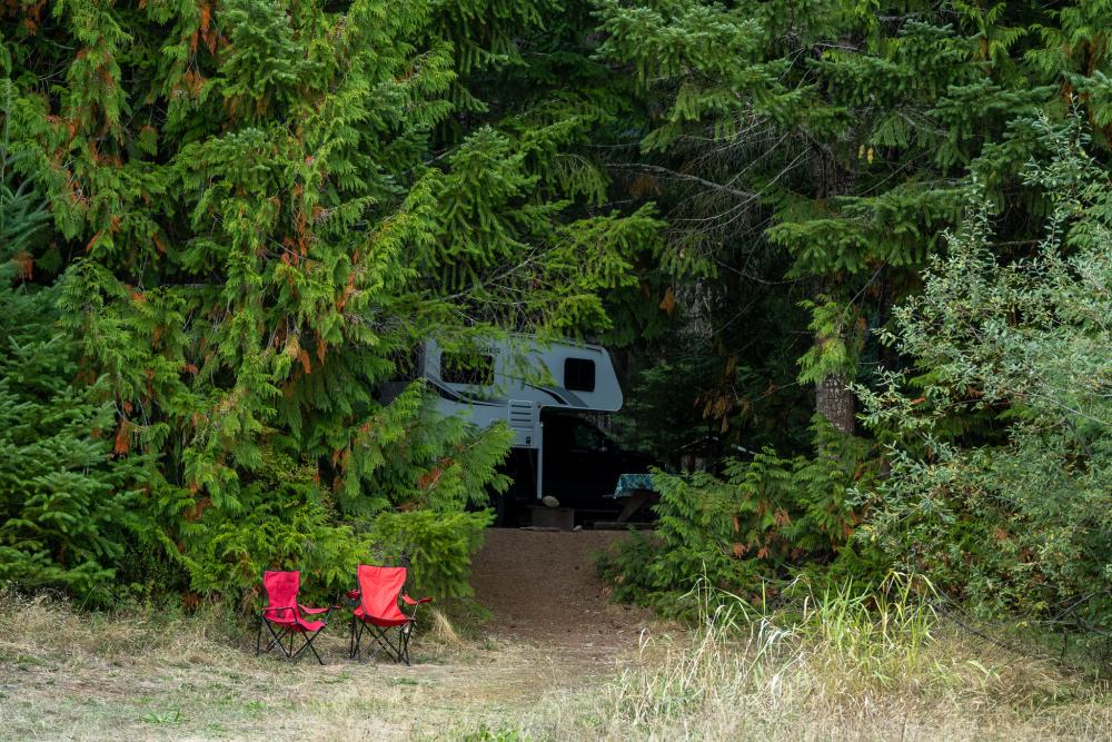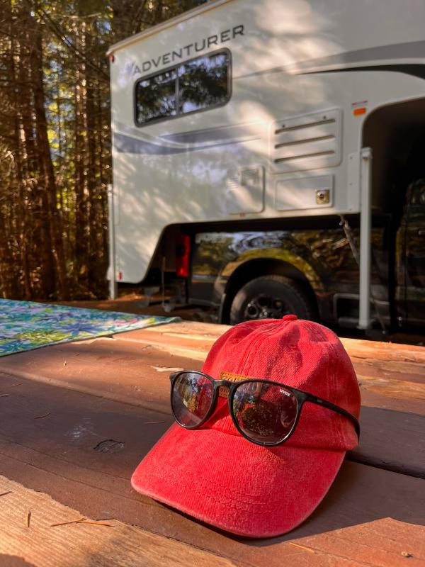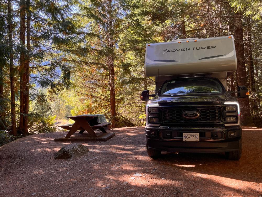 Als wir uns der Site nähern, folgt jedoch die Ernüchterung: da steht doch tatsächlich ein anderes RV auf unserem Platz surprise angry. Kein Wunder: am Schild befindet sich kein «reserved» Schild. Wir parkieren auf der nächsten Site und ich begebe mich zu den Campern, die zum Glück vor ihrem RV sitzen. Sie entschuldigen sich und meinen zwar noch, ob wir nicht auf die Nachbar-Site ausweichen könnten, aber als sie meine Story ‘bereits vor 10 Jahren wollte ich auf diesen Platz’ hören, packen sie ihre sieben Sachen zusammen und fahren selbst auf die nächste Site. Nachträglich betrachtet wundert es mich nicht, dass dies passiert ist. So ist während unseres gesamten Aufenthalts nie ein Host aufgetaucht. Das war insofern sehr schade, da wir kein Holz mehr hatten und somit das endlich erlaubte Campfire trotz wunderbarem Wetter ausfiel.