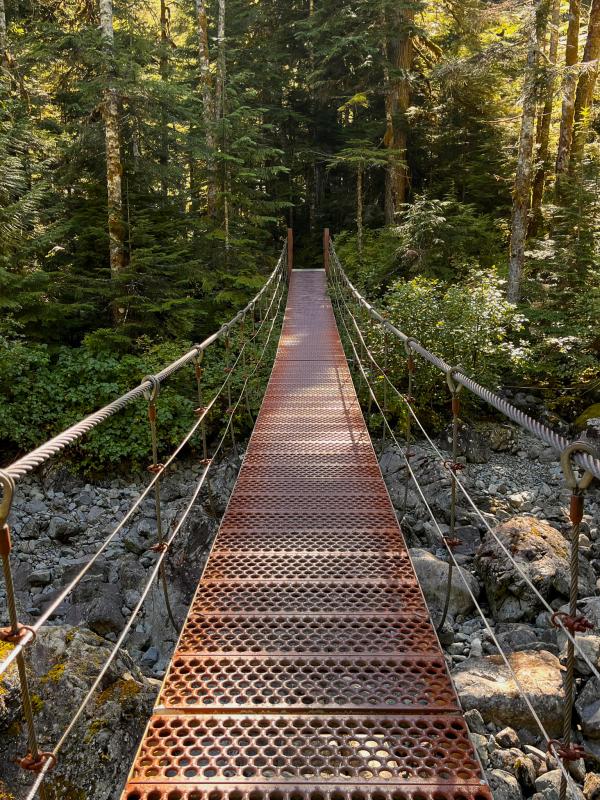So laufen wir einen Teil des Trails bis zu den ersten Brücken und kehren wieder um, als der Pfad den Berg hoch schlängelt. Uns kommen Hiker entgegen, die offensichtlich oben übernachtet haben. Das wäre sicher ein tolles Erlebnis.