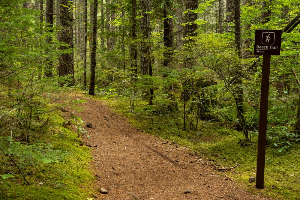 Wir verlassen den Ralph River Campground und fahren den Buttle Lake entlang zurück zur Hauptstrasse. Da wir Zeit haben, fahren wir zum Buttle Lake Campground und laufen dort eine Runde zum See.