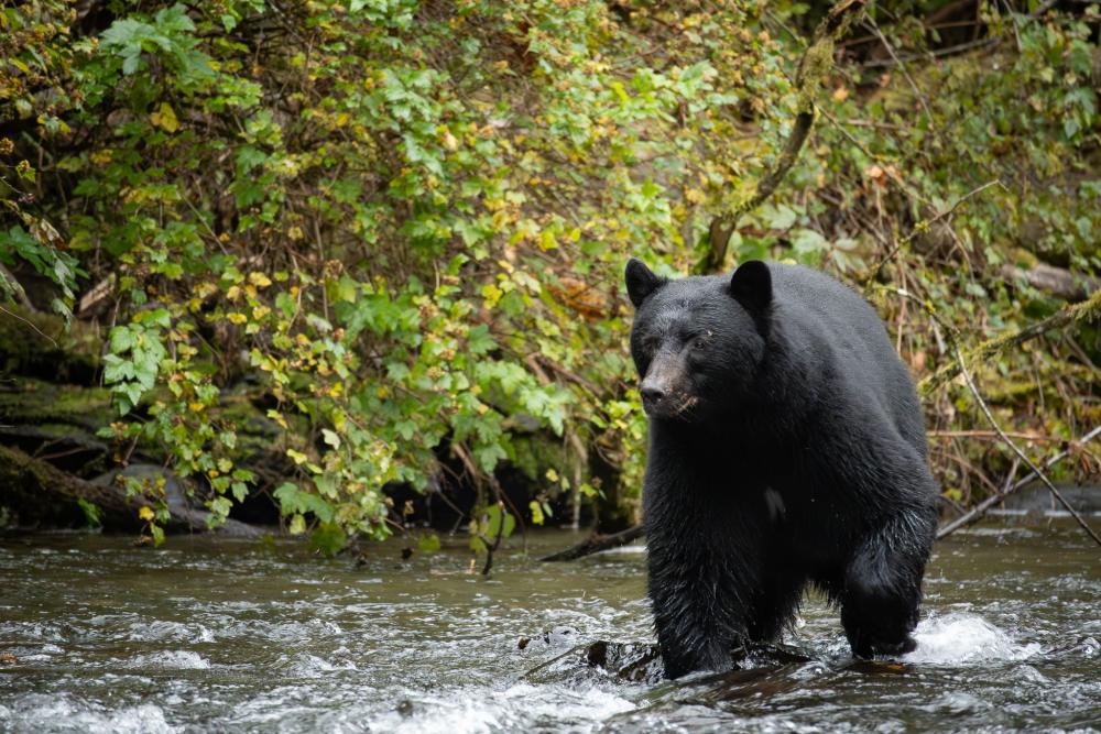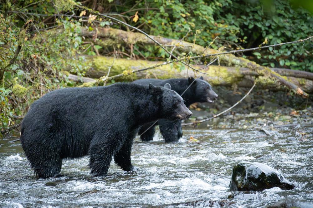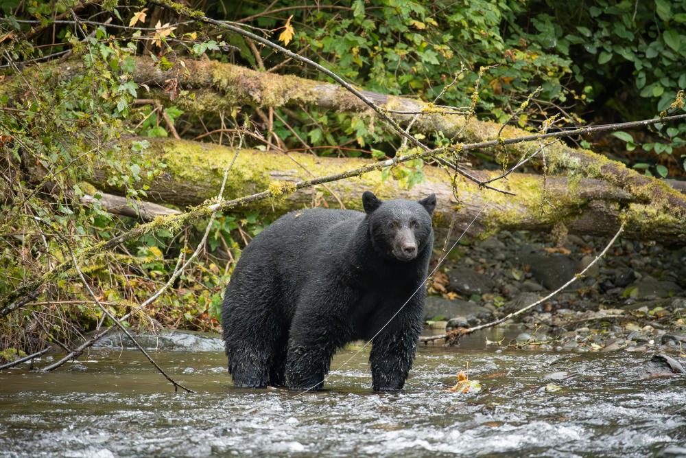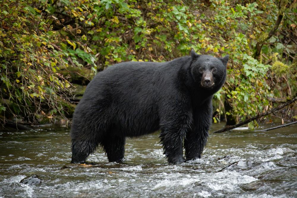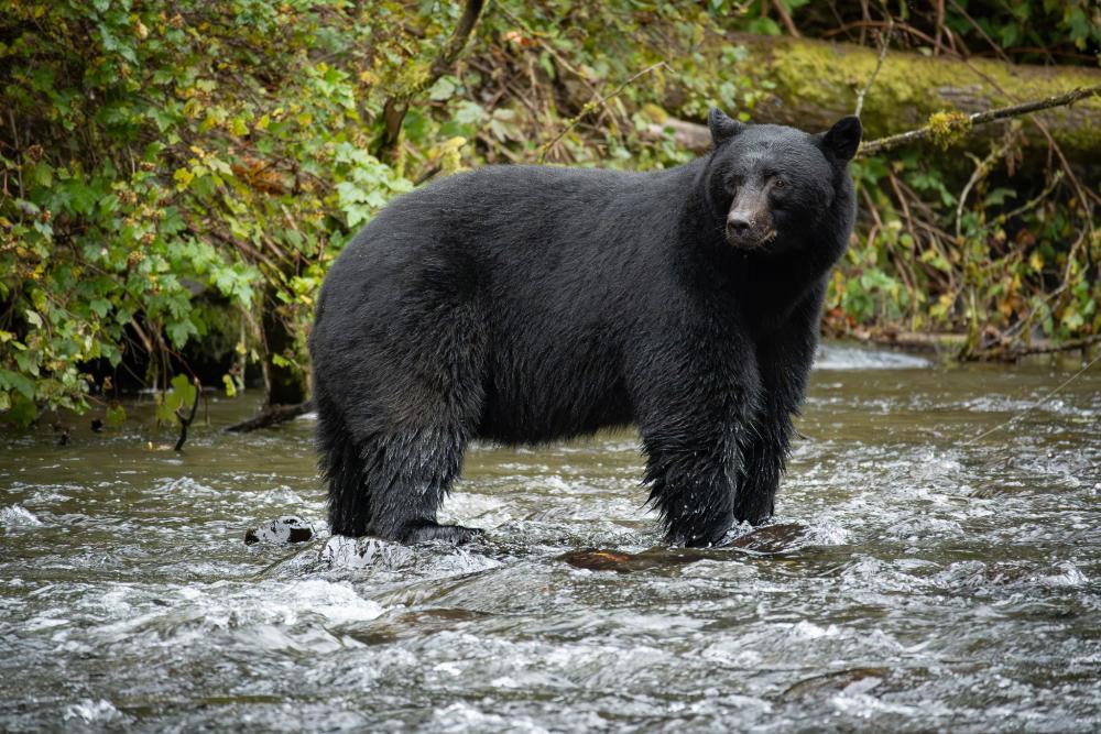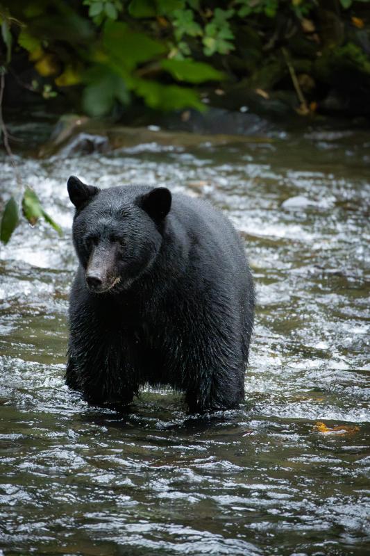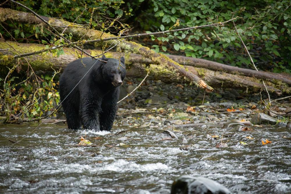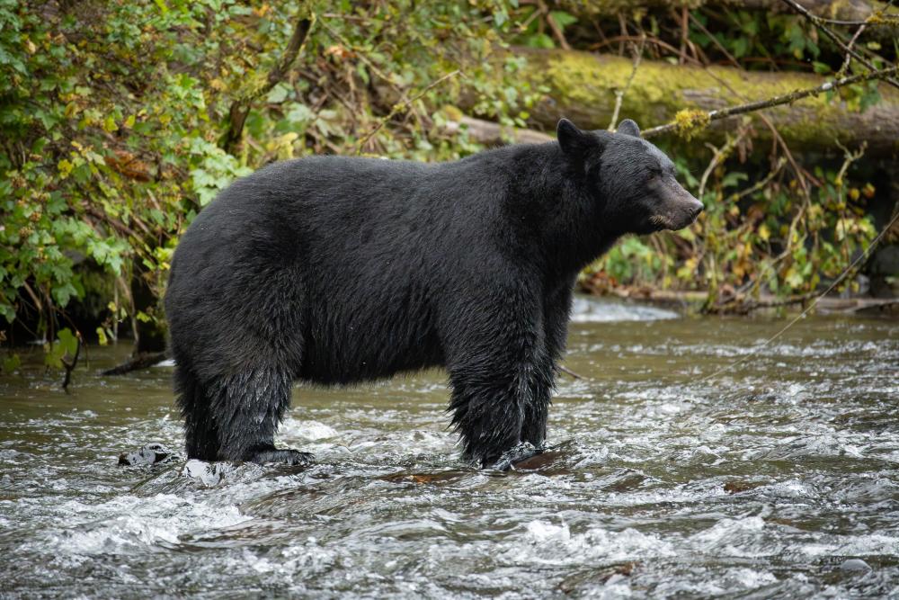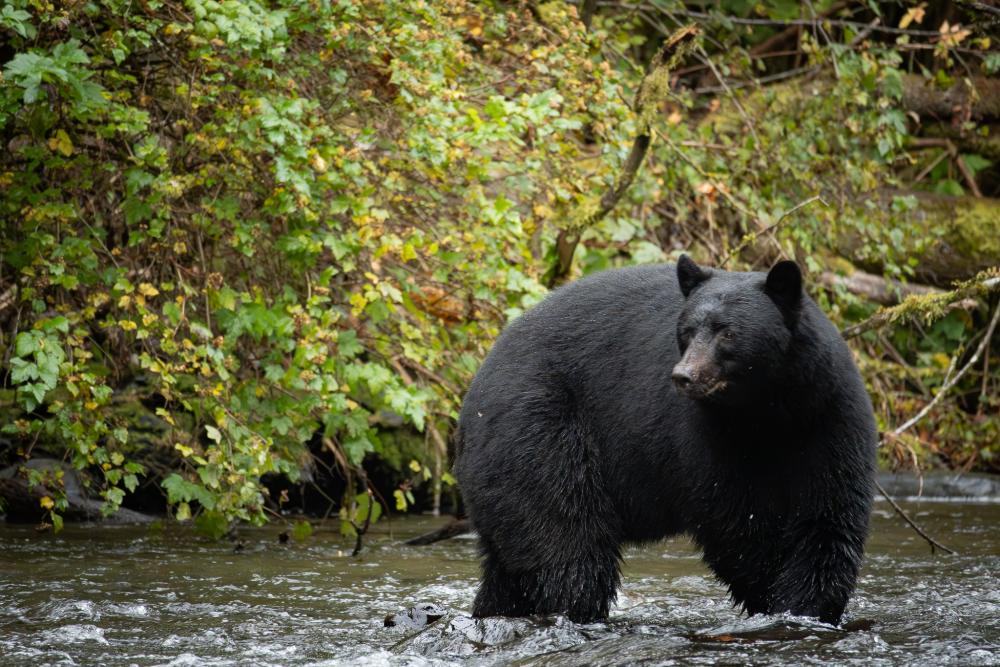 Ob er oder sie nochmals einen Lachs gefangen hat, entzieht sich unseren Kenntnissen. Die Lichtverhältnisse sind mittlerweile schlecht fürs Fotografieren und die Dämmerung ist schon sehr weit fortgeschritten. Daher sagen wir schweren Herzens «goodbye Quinsam River Bear» und verlassen unseren Traumspot.