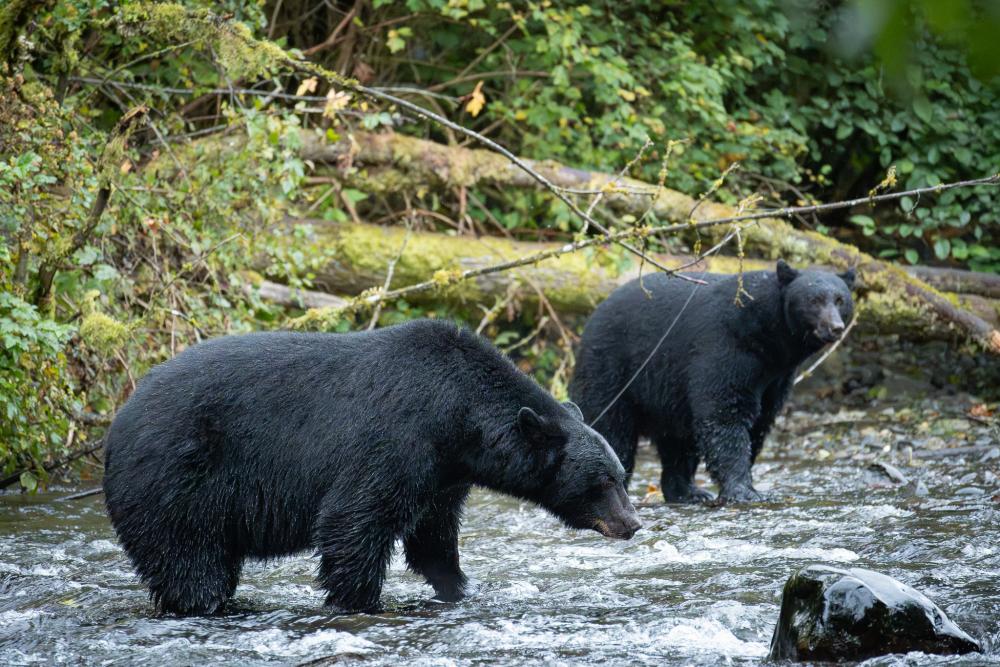 Bär Nr. 2 kommt aus dem Gebüsch und gesellt sich zu Bär Nr. 1: