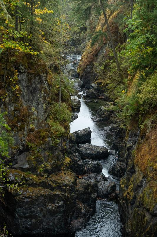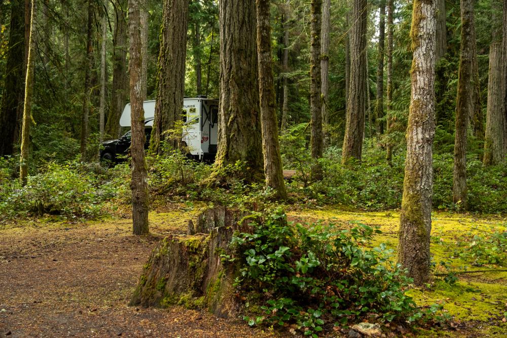 Wir nehmen es daher gemütlich, gehen nach dem Verlassen des Campgrounds noch nach Campbell River, wo wir etwas an der Marina herumflanieren bevor wir südwärts fahren. Morgen verlassen wir Vancouver Island mit der Fähre ab Nanaimo. Für die letzte Nacht habe ich den Englishman’s River CG ausgesucht, auf dem ich bisher noch nicht war. Das Wetter ist grottenschlecht und so haben wir unterwegs überhaupt keine Lust auf irgendwelches Sightseeing. Wirklich schade, ich hatte noch so viele Ideen für unseren letzten Tag, nun gibt es lediglich eine Nonstop-Fahrt bis zum Campground, den wir gegen 15 Uhr erreichen.