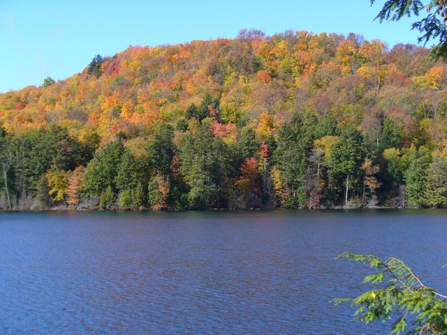 Nach ca. 6 Km. erreichen wir den Deer-Pond-Lake, ein wunderbarer kleiner See inmitten vom Nirgendwo. Wenn man am Seeufer steht, sieht man so richtig die farbige Pracht am gegenüber liegenden Ufer.