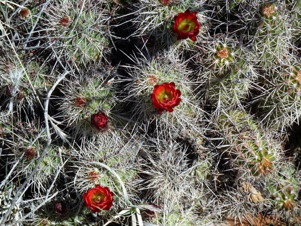 In dieser Felslandschaft und auch auf dieser Meereshöhe bemerken wir ganz erstaunt, dass wir uns in einer Wüstengegend befinden. Wir sehen am Weg blühende Kakteen - ein nicht erwarteter Anblick