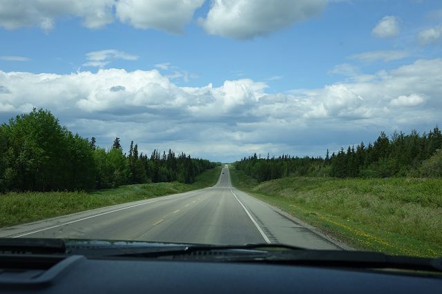 Kurz hinter Fort St. John war dann der Alaska Hwy erreicht und wir legten eine Kaffeepause ein bevor wir uns hier auf den Weg machten. Die Strecke selber verläuft kontinuierlich steigend durch Wälder und über Hügel hat aber keine besonderen Reize.