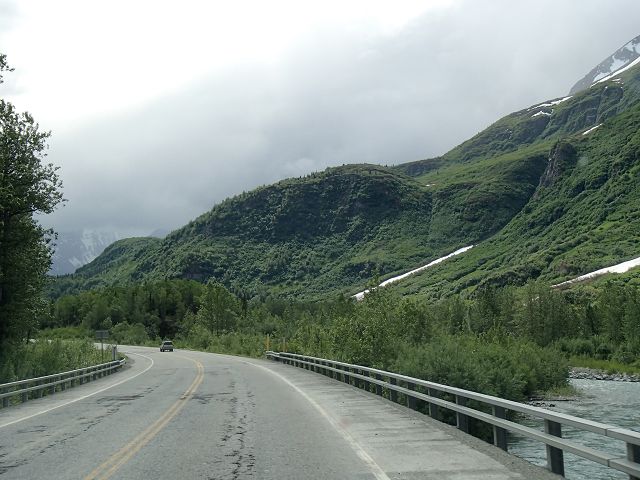 Wir wollten unsere überschüssigen 2 Tage für Valdez verwenden wo es bei unserem Besuch 2003 kein gutes Wetter hatte.. Unterwegs legten wir verschiedene Fotostops am Copper River, und, am Thompson Pass ein.