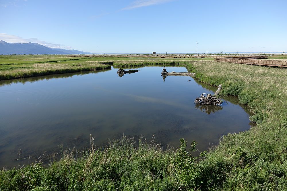 Nachdem wir hier einen Start und eine Landung beobachtet hatten machten wir uns wieder auf den Weg. Nächstes Ziel waren die Potter Marsh zur Tierbeobachtung.