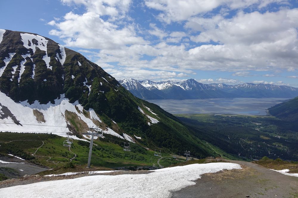 Bei der Aussicht gab's 7 Gletscher zu sehen und einen Blick von oben auf den Turnagain Arm. Leider konnten wir wegen des Schnee's nicht wandern und sind daher nach ½ Std. wieder zu Tal gefahren.