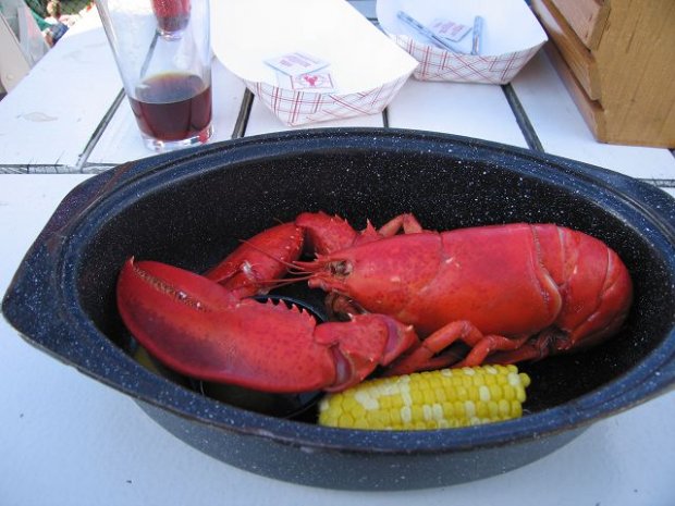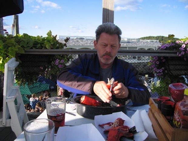 Zum Essen gabs bei Werner eine Clam Showder und bei mir eine Lobstercremesuppe. Dann jeder einen 1 ¼ Pfund Lobster und Werner eine Blueberry Pie und ich einen Blaubeer u. Erdbeerkuchen. Alles hat wunderbar geschmeckt.