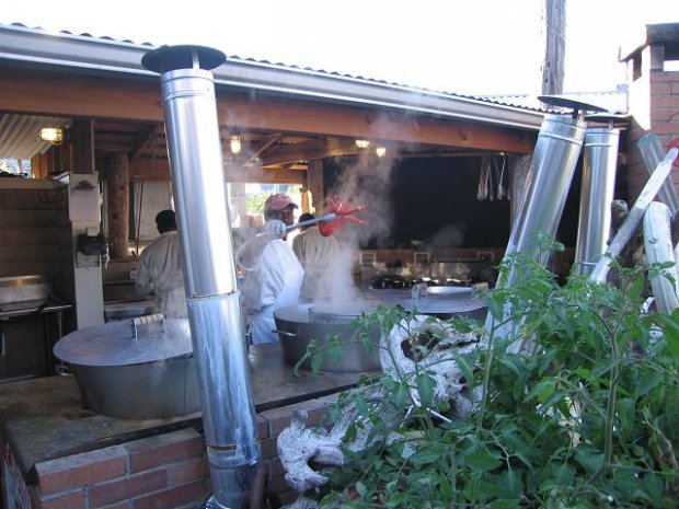 Da schwimmt es noch unser Essen und gleich daneben stehen die Kessel in denen Sie dann landen..