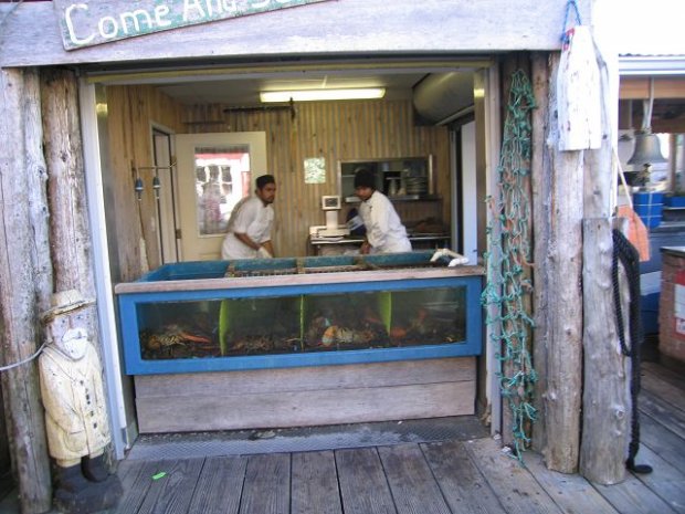 Ich hatte im Vorfeld schon geschaut welche Lokale gute Bewertungen hatten und wir entschieden uns für Stewman Lobster Pound ein typisches Lobsterlokal in dem die Kessel dampften.