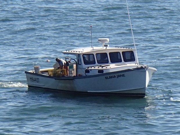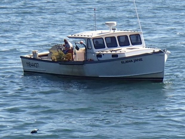 Mit dem Fernglas die Umgebung abgesucht aber keine Seals oder anderen Meerestiere entdeckt, außer einigen Möven und Kormorane. Allerdings kam dann ein Lobsterfischerboot und wir konnten sehr gut sehen wie die Fallen kontrolliert, entleert und neu bestückt wurden.