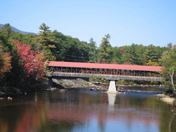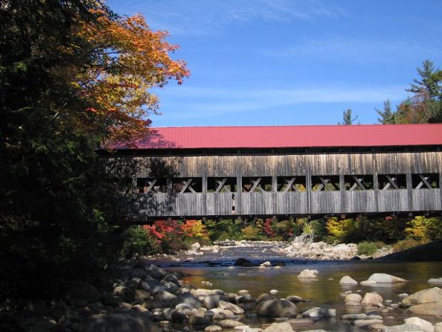 Dann hatte es dort etwas Feiertagsstau ,bevor wir auf den Kancamagus Hwy abbiegen konnten. Dabei gabs unterwegs diese schöne Covered Bridge zu sehen.